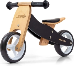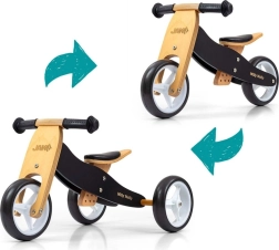 Odrážedlo 2v1 MILLY MALLY Jake Classic Black roste s dítětem: začíná jako jistá trojkolka a během chvilky z něj uděláte balanční kolo bez pedálů se dvěma koly. Díky lehké a pevné dřevěné konstrukci, pohodlnému měkkému sedlu s nastavením ve 3 úrovních a protiskluzovým rukojetím nabízí bezpečnou a zábavnou jízdu.