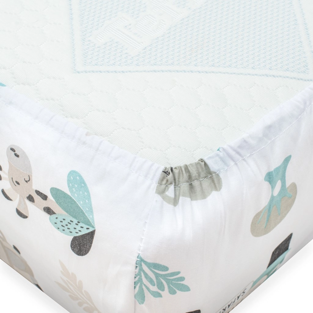 Praktické prostěradlo do postýlky z kvalitní hladké bavlny zajistí vašemu miminku pohodlí po celou noc. Díky všité gumičce po obvodu se pevně přizpůsobí matraci, nesklouzává a zůstává dokonale napnuté. Jemný dětský motiv Safari zútulní každou dětskou postýlku.