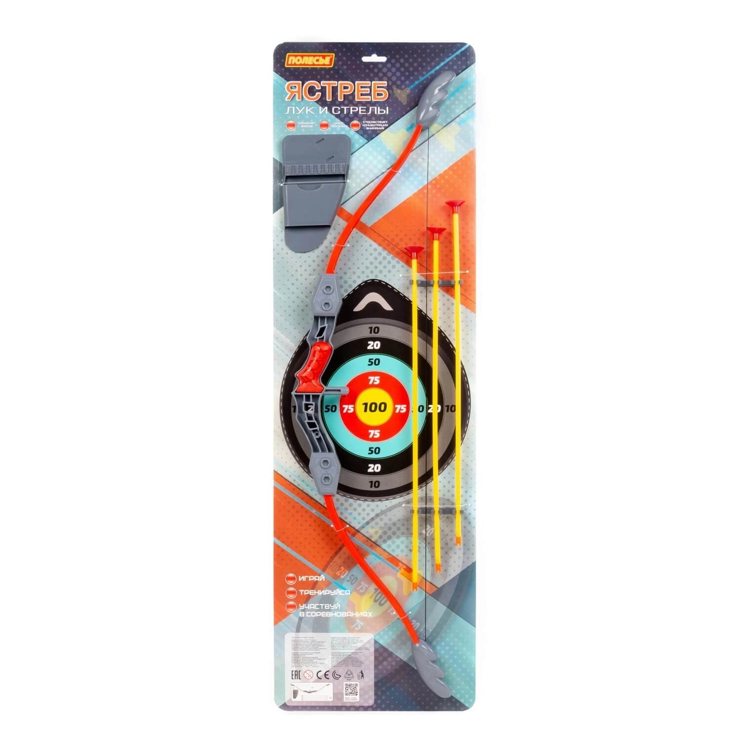 • Kompletní sada: luk, 3 šípy, toulec a vystřihovací terč