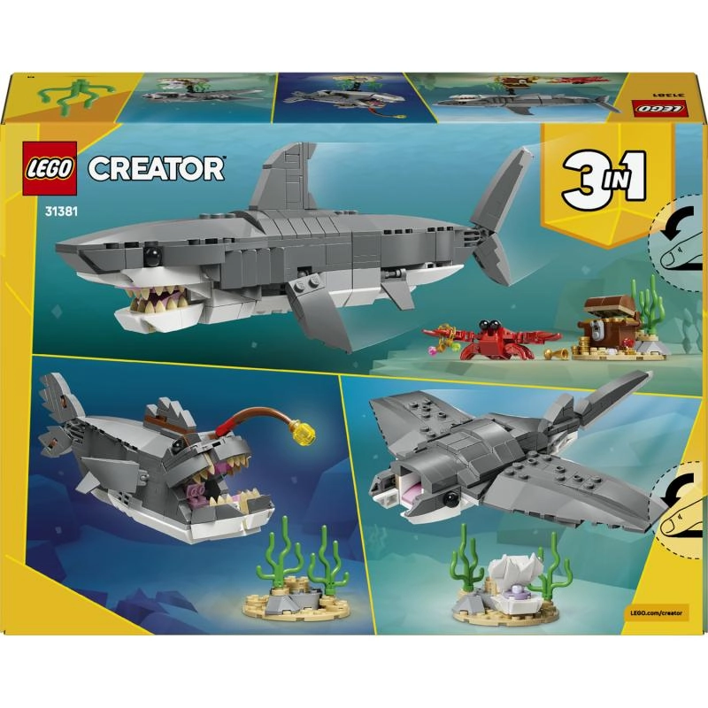 Vydejte se na podmořská dobrodružství se stavebnicí LEGO Creator 3v1, která dětem od 8 let nabízí 3 modely v jedné sadě: pohyblivého žraloka s truhlou s pokladem, hrozivého mořského ďasa nebo elegantní mantu. S 379 dílky si děti užijí kreativní stavění, parádní vystavení na podstavci a další hraní s aplikací LEGO Builder.