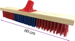 Výkonný uliční smeták o šířce 60 cm s pevnými PVC štětinami pro rychlé a účinné zametání na chodnících, parkovištích, v halách i skladech. Odolná dřevěná hlava s plastovým držákem a závitem 22 mm zajistí stabilní a snadné připevnění násady. Ideální pro náročný úklid na venkovních i průmyslových plochách.