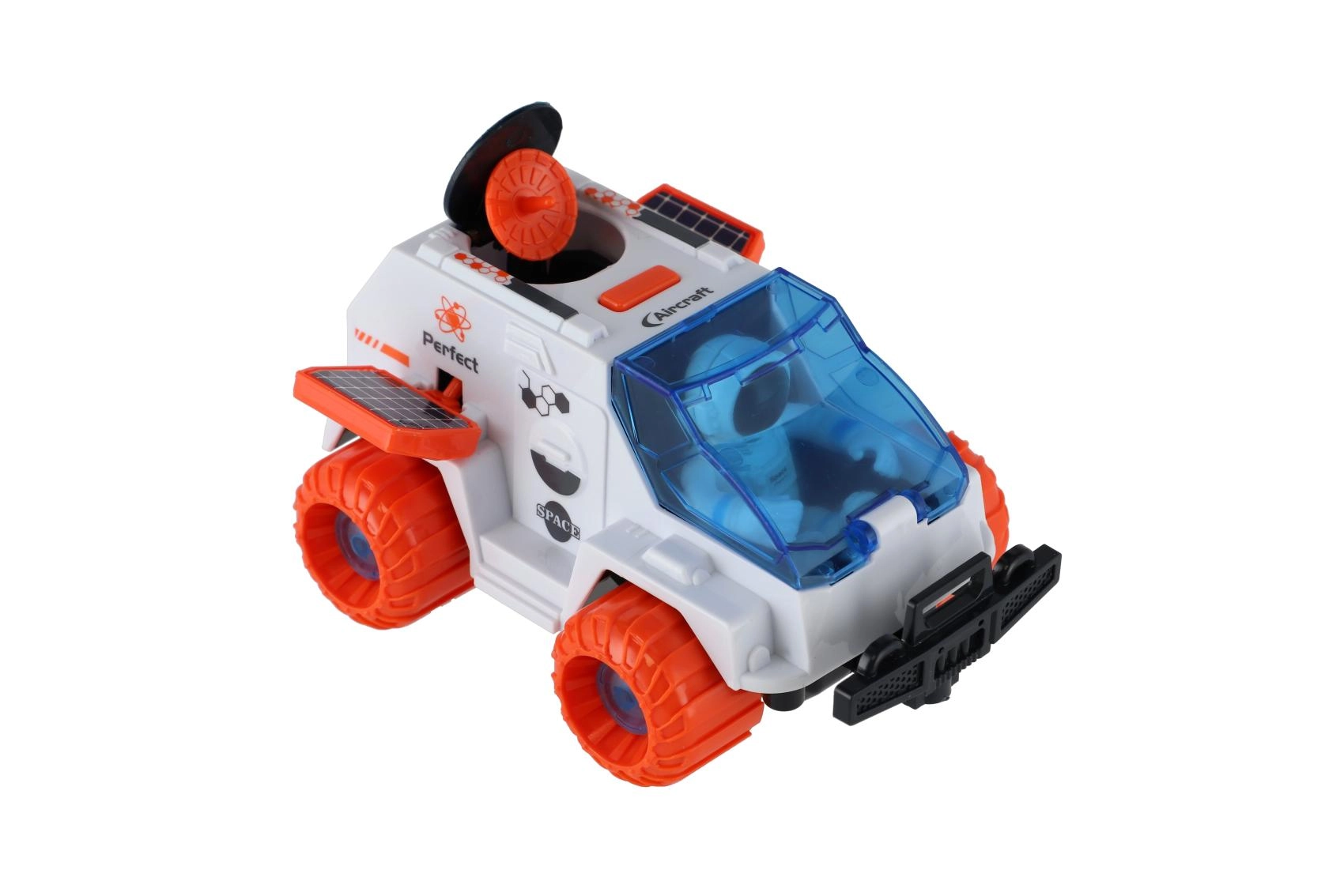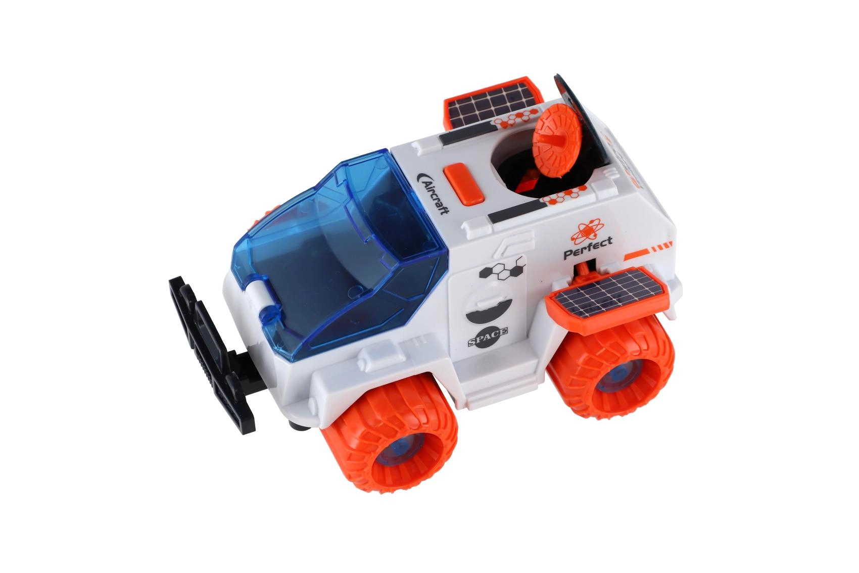 Design vozu zaujme modře tónovaným čelním štítem, detaily jako solární panely a radarová anténa podněcují fantazii a rozvíjejí jemnou motoriku. Hračka je vyrobena z odolného plastu a je skvělá pro samostatnou i společnou hru.