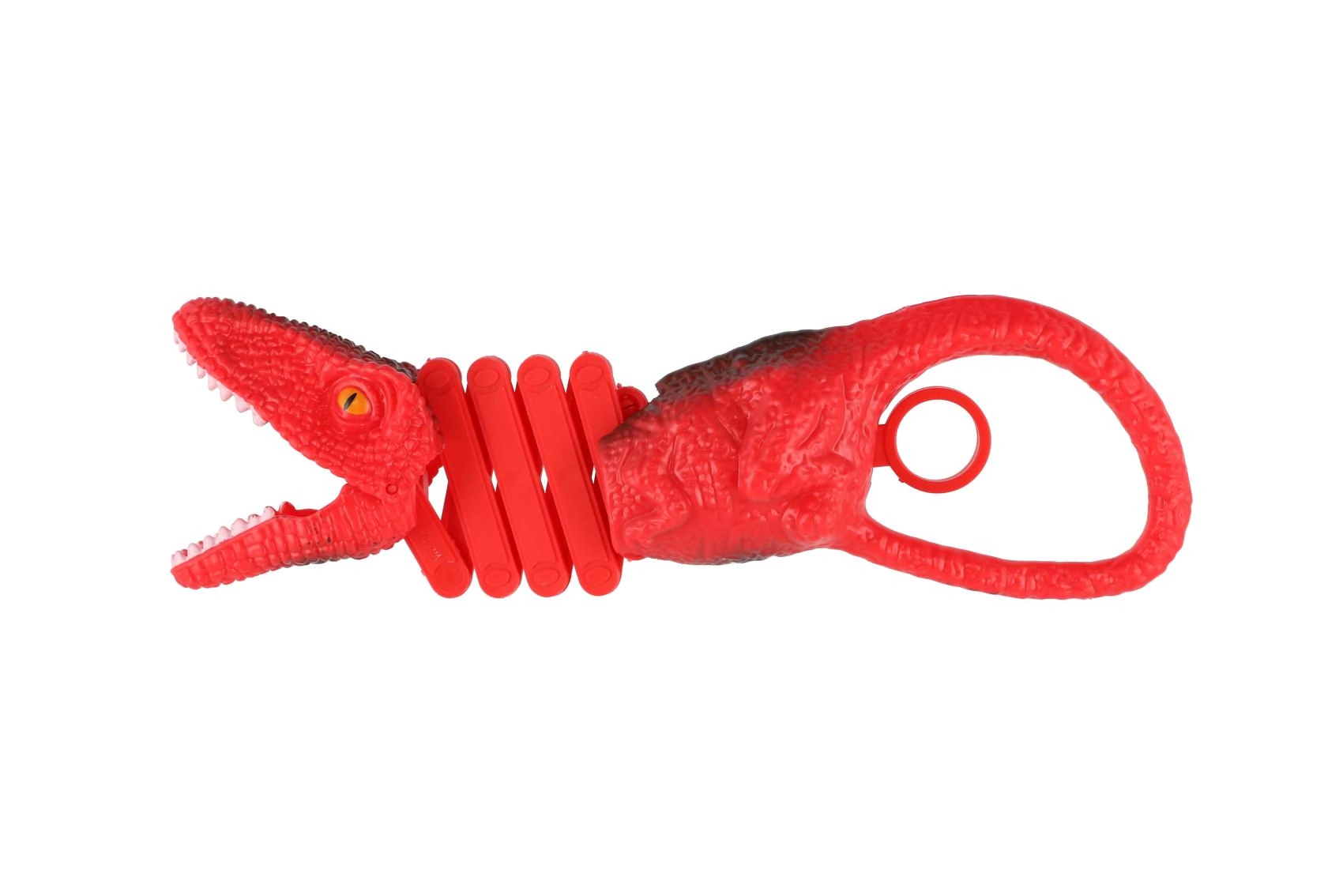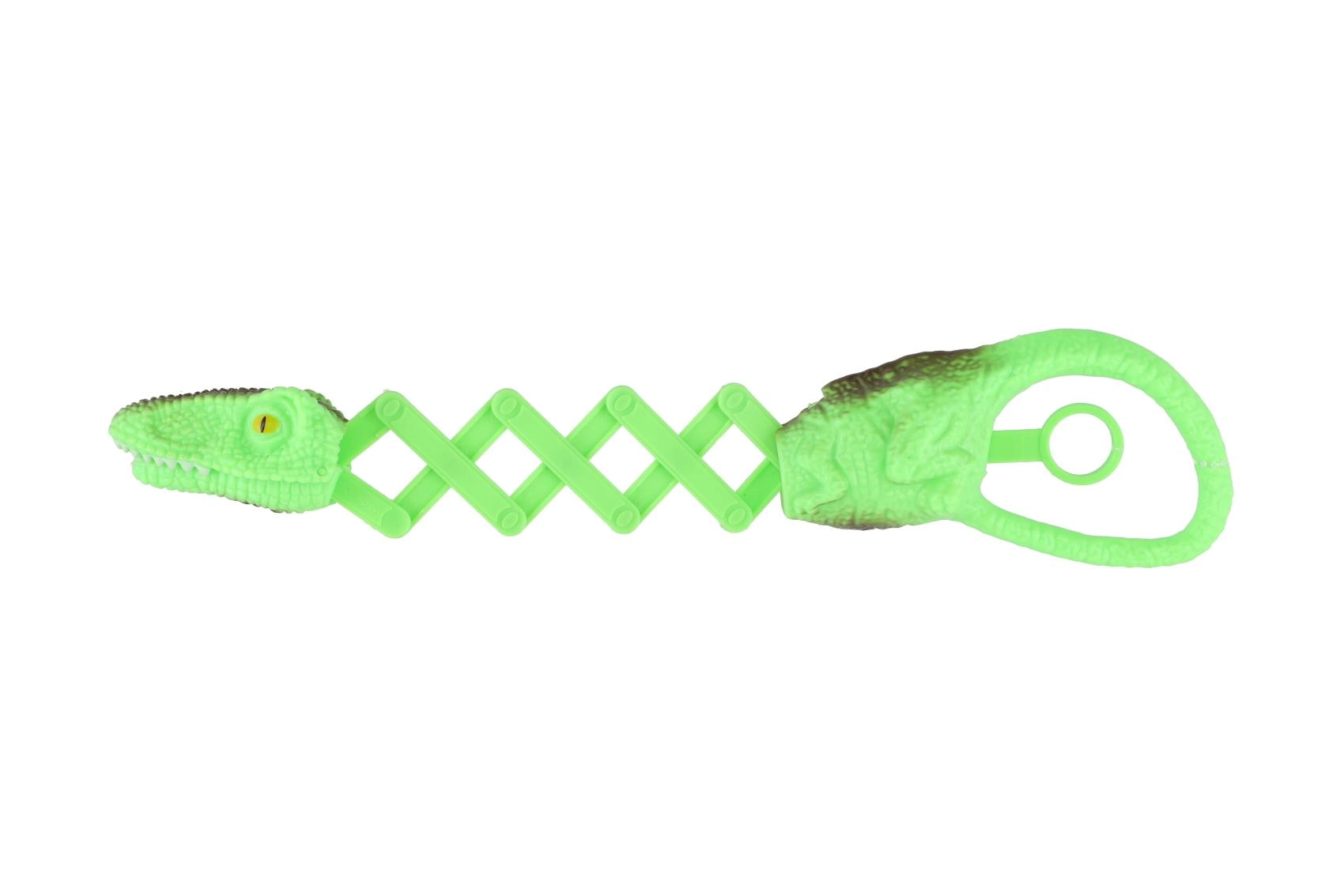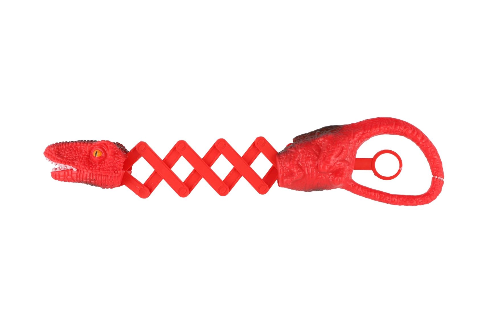 Díky teleskopickému článkování dosáhne dinosaurus dál a uchopí předmět s jistotou. Texturovaný povrch připomínající dinosauří kůži a výrazné barvy z něj dělají atraktivní doplněk dětských her. Skvělé na doma, na cesty i jako originální drobný dárek.
