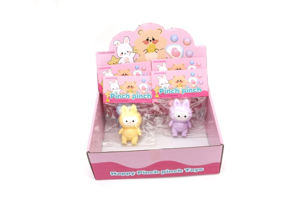 Figurka je dostupná v oblíbených pastelových odstínech (růžová, žlutá, fialová, modrá) a je bezpečná pro hraní – neobsahuje malé odnímatelné části. Stylové balení „Pinch pinch“ z ní dělá skvělý tip na drobný dárek nebo milý sběratelský kousek.