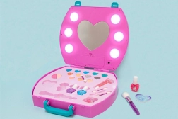 Stylové kosmetické studio v přenosném kufříku pro malé parádnice od 8 let. Součástí je zrcátko ve tvaru srdce s LED osvětlením, 12 očních stínů, tvářenky, lak na nehty, lesk a balzám na rty i štětečky. Ideální pro kreativní líčení doma i na cestách.