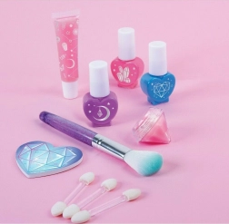 Vše je přehledně uloženo v praktickém kufříku, takže kosmetické studio je ideální na doma i na cesty. Osvětlení zrcátka funguje na 4× AA baterie (nejsou součástí balení). Výrobek je určen pro děti od 8 let.