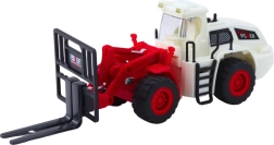 Odolné kovové vidlice zajišťují stabilitu při nakládání malých předmětů a dodávají vozíku autentický vzhled skutečného stroje.