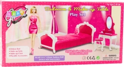 Stylová sada nábytku do ložnice pro panenky typu fashion o výšce cca 29 cm. Obsahuje postel, toaletní stolek se zrcadlem a stoličku. Odolné plastové provedení, růžovo-bílý design a bezpečné zaoblené tvary podporují kreativní hru a rozvoj jemné motoriky.