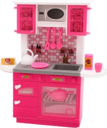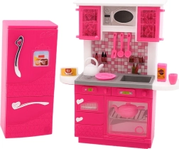 Tento detailně zpracovaný set kuchyňské linky a samostatné lednice v moderní růžovo‑bílé kombinaci promění pokoj v malé kulinářské studio. Realistické prvky, jako je otevíratelná trouba, dřez, horní skříňky a poličky, zvou k nápaditému vaření a servírování. Součástí jsou také miniaturní nádobí a potraviny, aby hra byla ještě pestřejší.