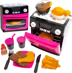 Součástí je vše, co malí kuchaři potřebují: hrnce a pánve, příbory, potraviny na hraní (kuře, steak, pečivo), talířky i lahvička se sosem. Stabilní konstrukce a pěkný design dělají z kuchyňky skvělý dárek pro děti.