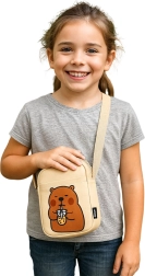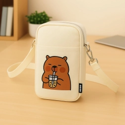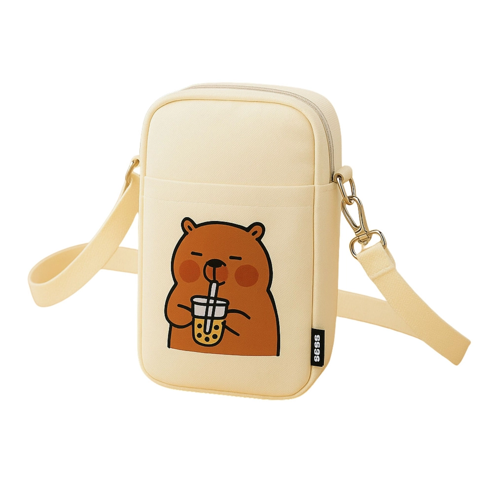 Díky nastavitelnému popruhu si snadno upravíte délku přesně podle postavy. Hlavní zipová kapsa bezpečně pojme nezbytnosti, zatímco přední otevřená kapsa usnadní rychlý přístup k drobnostem. Přední potisk roztomilé kapybary s bubble tea dodává tašce originální vzhled, který zaujme děti i dospělé.