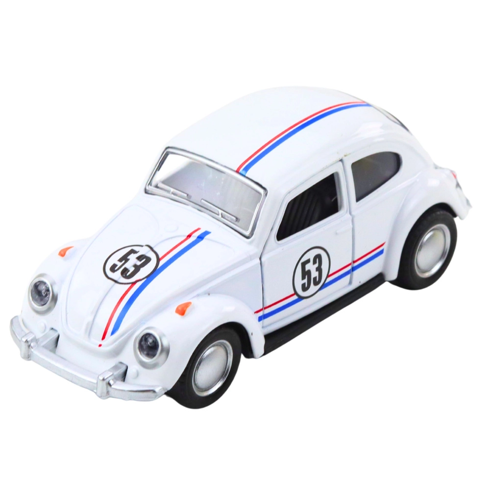 Stylový kovový model inspirovaný legendárním „broukem“ v měřítku 1:32 nadchne děti i sběratele. Nabízí kovovou karoserii, napínavý pull-back pohon pro rychlou jízdu, otevírací dveře a detailní zpracování v elegantní bílé barvě.