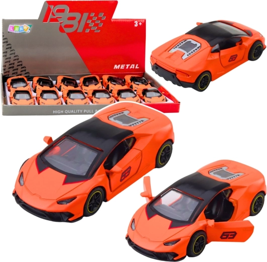 Stylové kovové sportovní autíčko v měřítku 1:43 potěší malé závodníky i sběratele. Má kovovou karoserii, otevírací dveře a natahovací pohon pull-back pro rychlou a zábavnou jízdu. Kompaktní rozměry, aerodynamický design a výrazná oranžová barva s černými detaily z něj dělají skvělou hračku i dekorativní model.