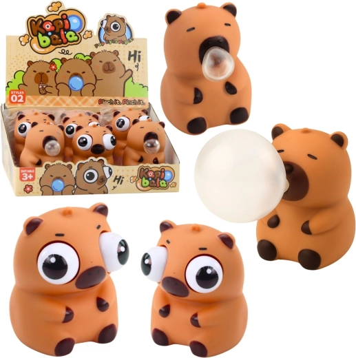 Antistresový mačkací kapybara s bublinkou a vystřelujícíma očima, hnědá 8,5 cm
