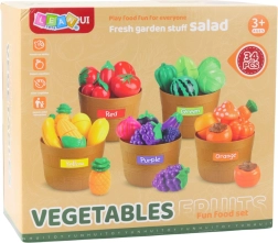- ovoce a zelenina (34 ks), barevné košíčky, plastový nožík, prkénko, balení výrobce