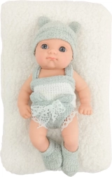 Panenka je oblečená do šedo-bílých dupaček se sladěnými ponožkami a měkkou čepičkou s oušky. V balení nechybí silný a hebký kocourek, se kterým mohou děti miminko přikrývat, houpat a uspávat. Pohyblivé končetiny a hlavička umožní snadno měnit polohy – posadit, položit či převlékat, což podporuje kreativitu, jemnou motoriku a hru na role.