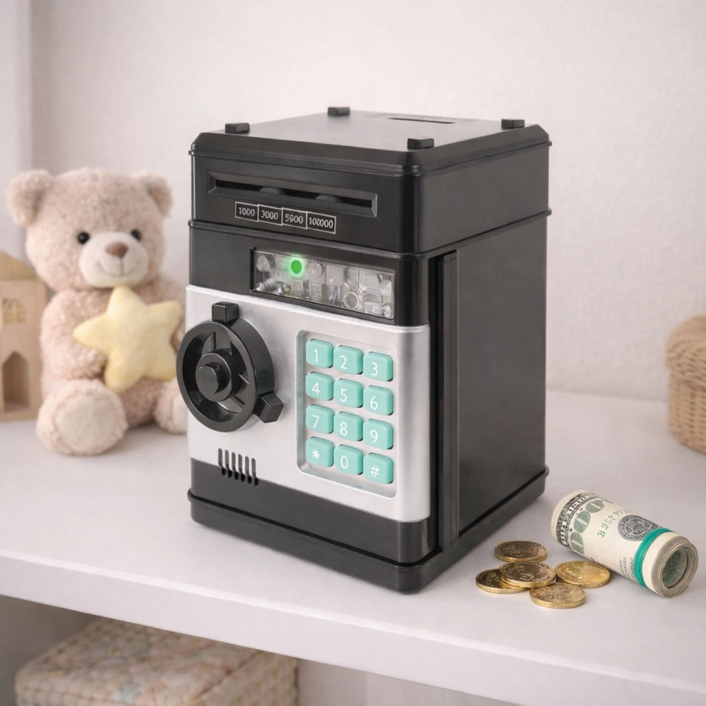 Kreativní stavebnice pro děti, která zábavnou formou učí šetřit. Po složení vznikne elektronická pokladnička se zámkem na PIN, numerickou klávesnicí a zvukovými efekty. Umožňuje ukládat bankovky i mince a rozvíjí logické myšlení, trpělivost a zodpovědnost.