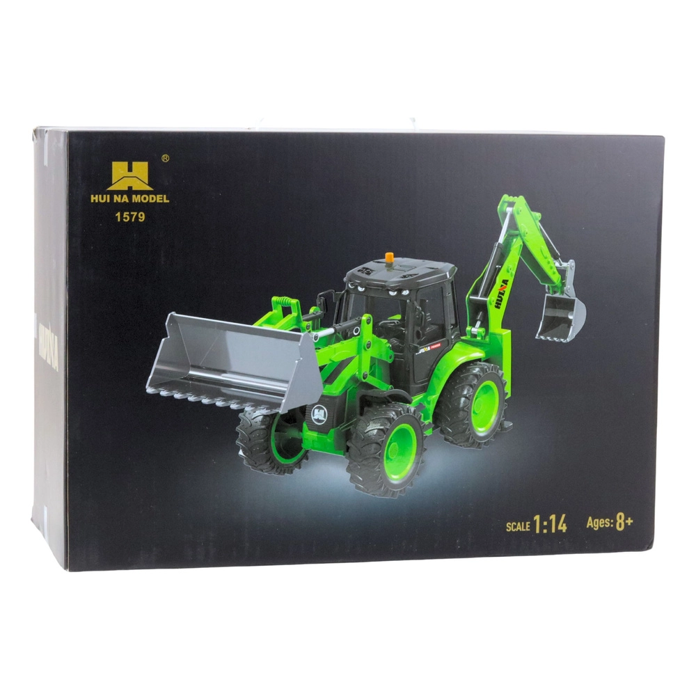 Užijte si hodiny realistické zábavy s RC kolovým traktorem bagrem HUINA 1:14světelné a zvukové efekty.