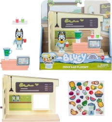 Objevte svět BLUEY s hravým setem Mini Juice Shop. Tento set přináší barevné figurky, bar s mixérem, tác se šťávami a sadu samolepek pro nekonečné příběhy a kreativní hru.