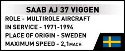 Při stavbě oceníte čitelné a intuitivní instrukce, přesné dílky kompatibilní s dalšími značkami a množství funkčních detailů: otevíratelný kokpit, pohyblivé plochy a výklopný podvozek. Součástí je také figurka pilota s vybavením a kolekcionářský stojánek s jmenovkou a švédskou vlajkou pro atraktivní vystavení.