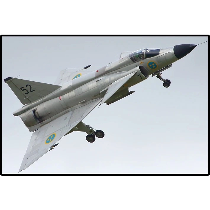Precizní tvarování delta křídel, kachních ploch a podvěsné výzbroje doplňují odolné potisky švédského letectva – bez použití samolepek.