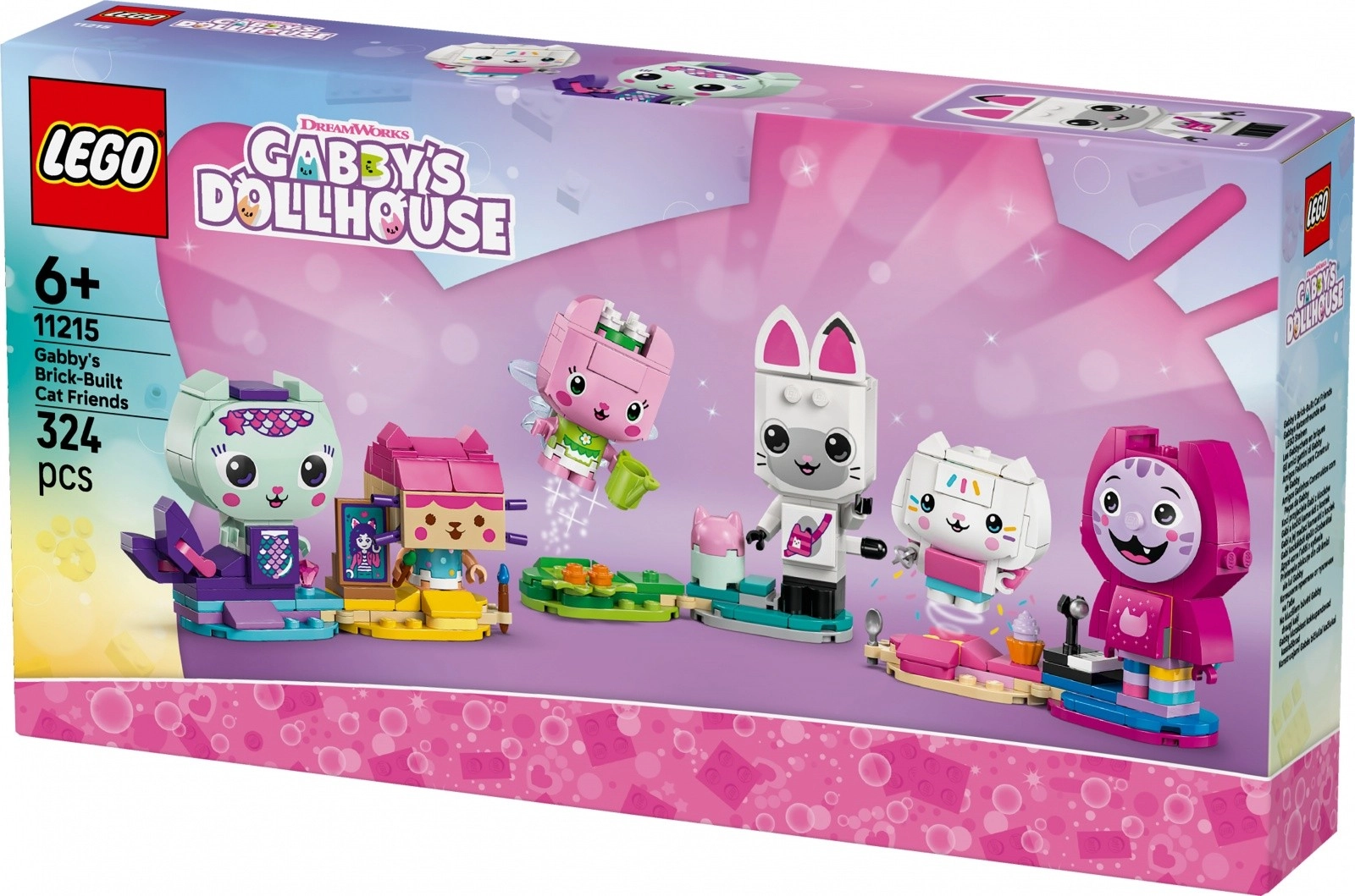 V balení najdete: Syrenkotku s „diamantem“, Tekturžátko s obrazem Gabi, Vróžkicii s konvičkou, Kiciuše Panduše s domečkem pro panenky, Łakotka s dortem a Daniela Džema / DJ Kocimiętku s klávesami. Díky aplikaci LEGO Builder můžete modely přibližovat, otáčet ve 3D a sledovat postup stavby – ideální pro budování sebejistoty při stavění.