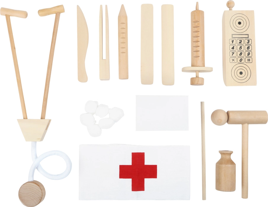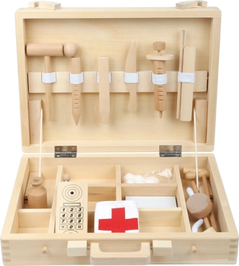 Dřevěný doktorský kufřík SMALL FOOT přináší dětem autentický zážitek z lékařské ordinace. V elegantním dřevěném kufru s klasickými doktorskými symboly najdou malé doktorské nástroje, hračkový telefon i stříkačky – vše bezpečné pro dětskou hru. Díky kvalitnímu zpracování a hladkým hranám je set ideální pro každodenní hraní.