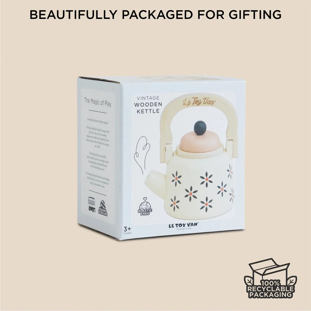 Objevte elegantní dětskou konvičku v retro stylu, která vyniká jemnými florálními detaily a krémovým lakem. Konvička je vyrobena eticky z FSC certifikovaného dřeva, takže je šetrná k přírodě i bezpečná pro děti. Díky robustnímu zpracování je ideální pro každodenní hraní v dětské kuchyňce.