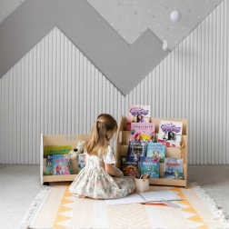 Elegantní, čistý design dětského knihovního stojanu BusyKids skvěle zapadne do každého interiéru. Přední, nízké a snadno dostupné police umožňují dětem vybírat knihy podle obálek, což přirozeně podporuje jejich zájem o čtení a rozvíjí samostatnost. Zadní úložná část poskytuje další místo pro větší knížky či oblíbené hračky.