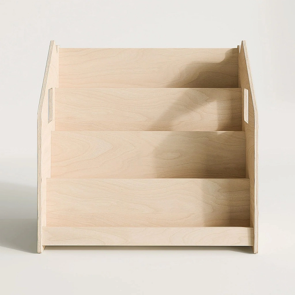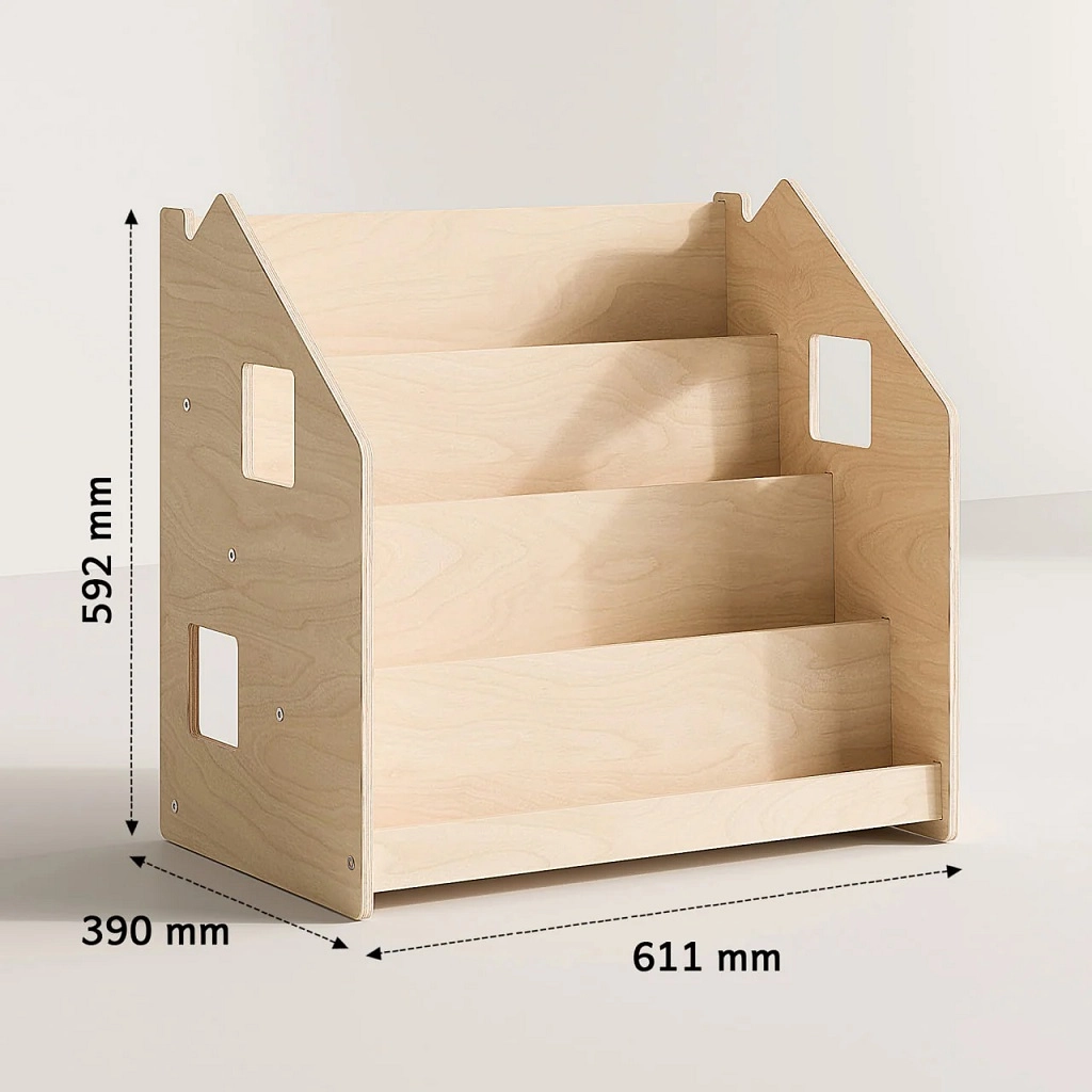 Praktický dětský stojan na knihy z kvalitní březové překližky podporuje samostatnost při čtení a udržuje v pokoji pořádek. Díky přehlednému frontálnímu vystavení obálek si děti snadno vyberou svou oblíbenou knížku a po dočtení ji jednoduše vrátí. Nabízí 4 prostorné regály a zadní úložný prostor na knihy či hračky, má robustní a bezpečnou konstrukci se zaoblenými hranami a je ošetřen lakem na vodní bázi.