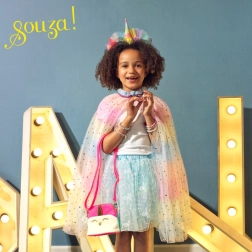 Vstupte do světa duhy a hvězd s kostýmem jednorožce, který promění každou hru v magické dobrodružství. Lehký plášť se snadno obléká, čelenka i hůlka dodají kostýmu kouzelný dotek a dětem umožní vytvářet vlastní příběhy plné fantazie.