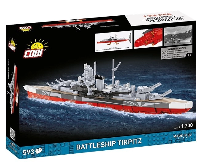 Užijte si precizní stavbu a výsledný model slavného pancéřníku TIRPITZ, sestavený z pečlivě lícujících kostiček. Díky autentickým potiskům s emblémy a označením bez použití samolepek získáte trvanlivý sběratelský kousek, který skvěle vypadá na přiloženém stojánku se jménem lodi a měřítkem.