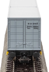 Detailně zpracovaný model kontejnerového vozu v měřítku H0 představuje provoz u dopravce DR v epoše IV. Nabízí 2× 20' kontejnery, standard NEM se šachtou a krátkou kinematikou, délku 157 mm a spolehlivý provoz na DC. Ideální pro realistické nákladní soupravy a doplnění východoněmeckých vlakových sestav.