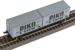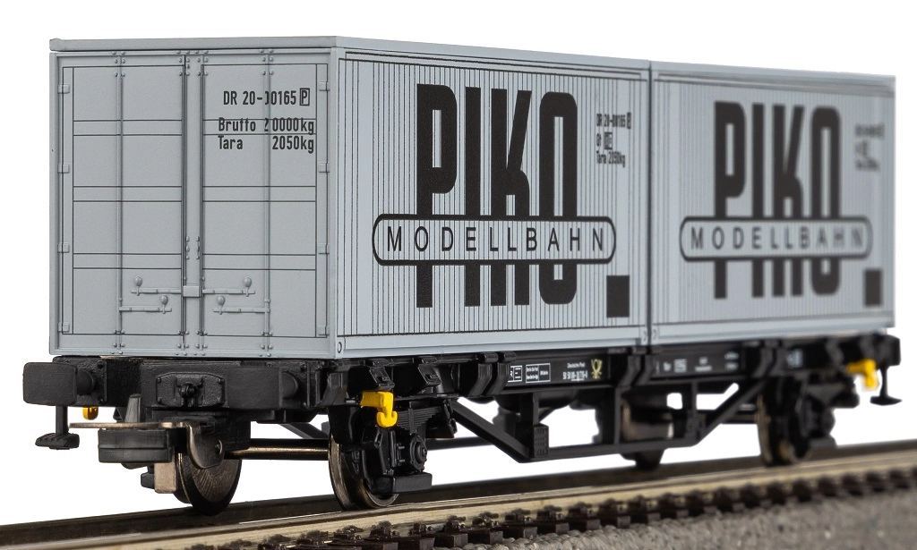 Model kontejnerového vozu s motivem „VEB PIKO“ věrně zobrazuje vůz Deutsche Reichsbahn z epochy IV (cca 1970–1990). Díky preciznímu potisku, ostrým detailům rámu a podvozků a autentickému nápisu je perfektní volbou pro sběratele i aktivní modeláře. Součástí jsou již nasazené 2× 20' kontejnery, které dodají vaší nákladní soupravě realistický charakter.