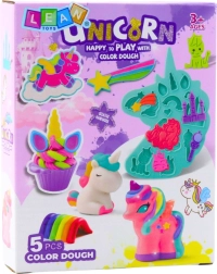 Součástí sady je modelína v 5 barvách, formy s motivy jednorožců, motýlů a dekorací a nástroj ve tvaru hvězdy pro přesné tvoření. Vše je vyrobeno z bezpečných materiálů vhodných pro děti a uloženo v dárkovém balení – skvělý tip na narozeniny či svátky.