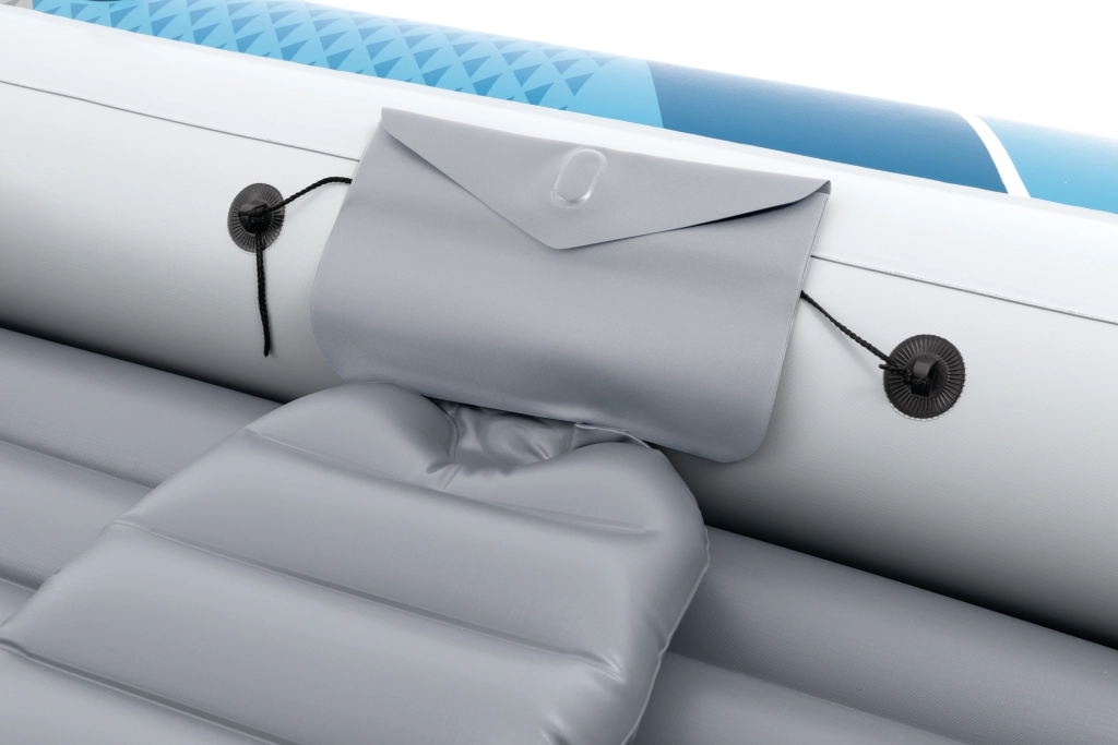Pro maximální komfort je člun vybaven nafukovací podlahou s I-nosníkem a dvěma nafukovacími sedáky s opěrkou zad, které snadno upevníte elastickými lanky. Praktické pouzdro na drobnosti udrží výbavu po ruce a v suchu. Díky bostonským ventilům člun rychle nafouknete i vyfouknete, zatímco rotační zámky vesel zaručí efektivní a pohodlné veslování.