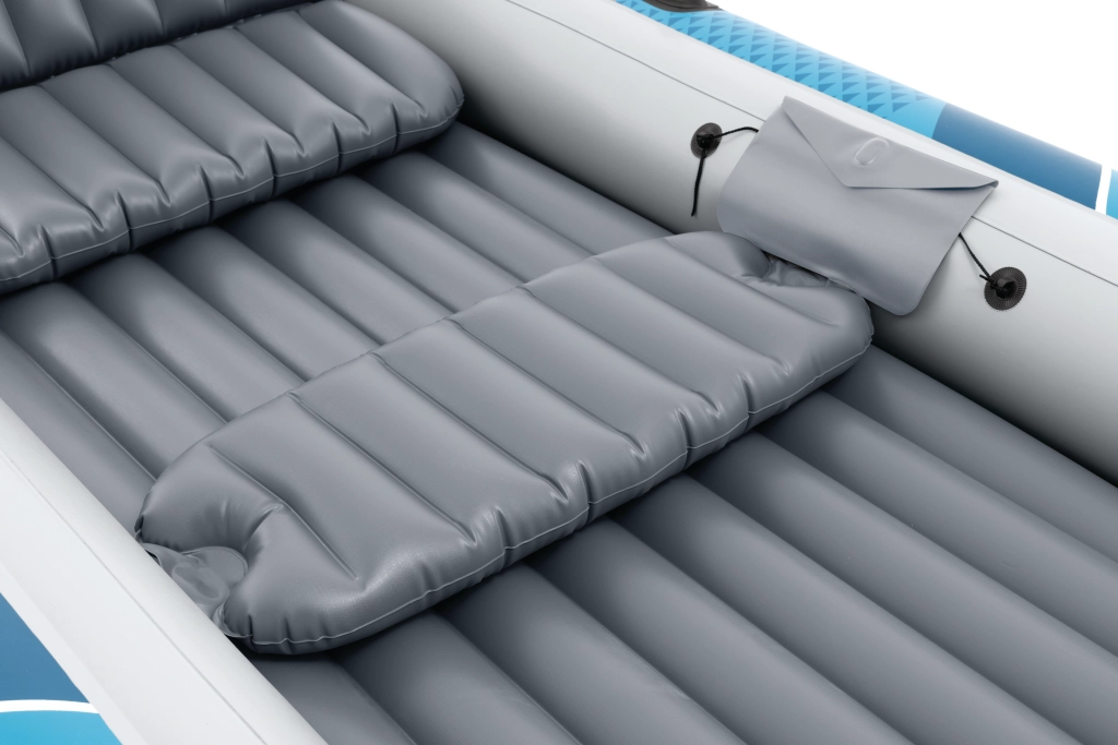 Tříkomorový systém s pomocnou komorou, robustní PVC a nafukovací podlaha s I-nosníkem poskytují vysokou stabilitu, vztlak a jistotu na vodě.