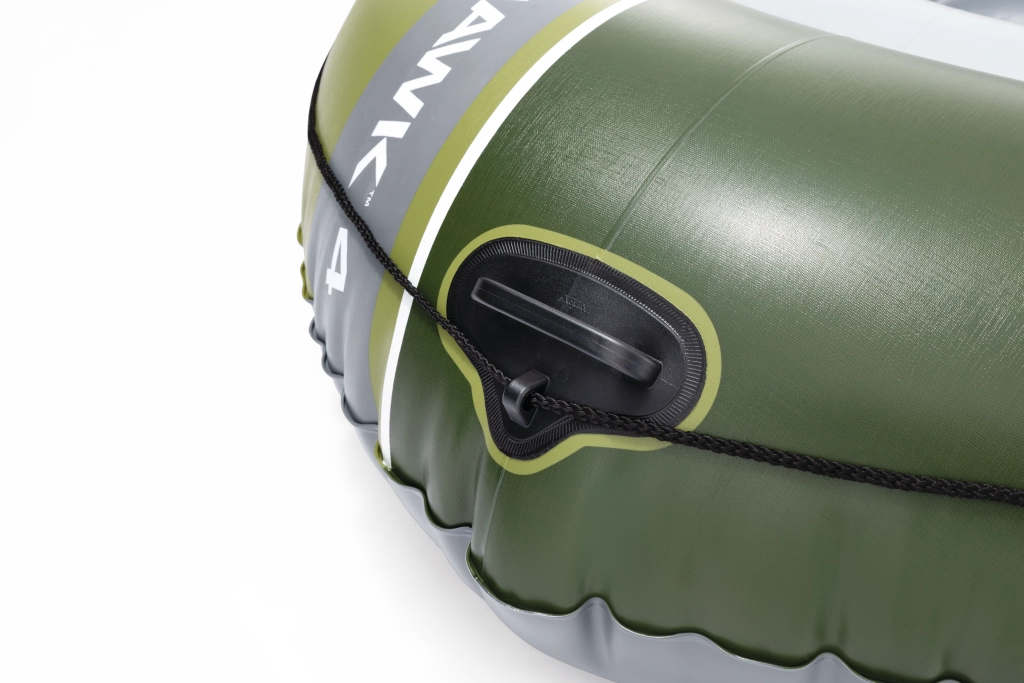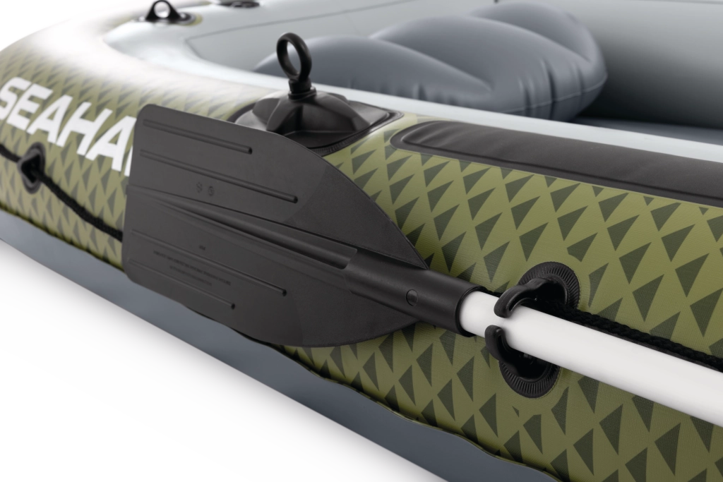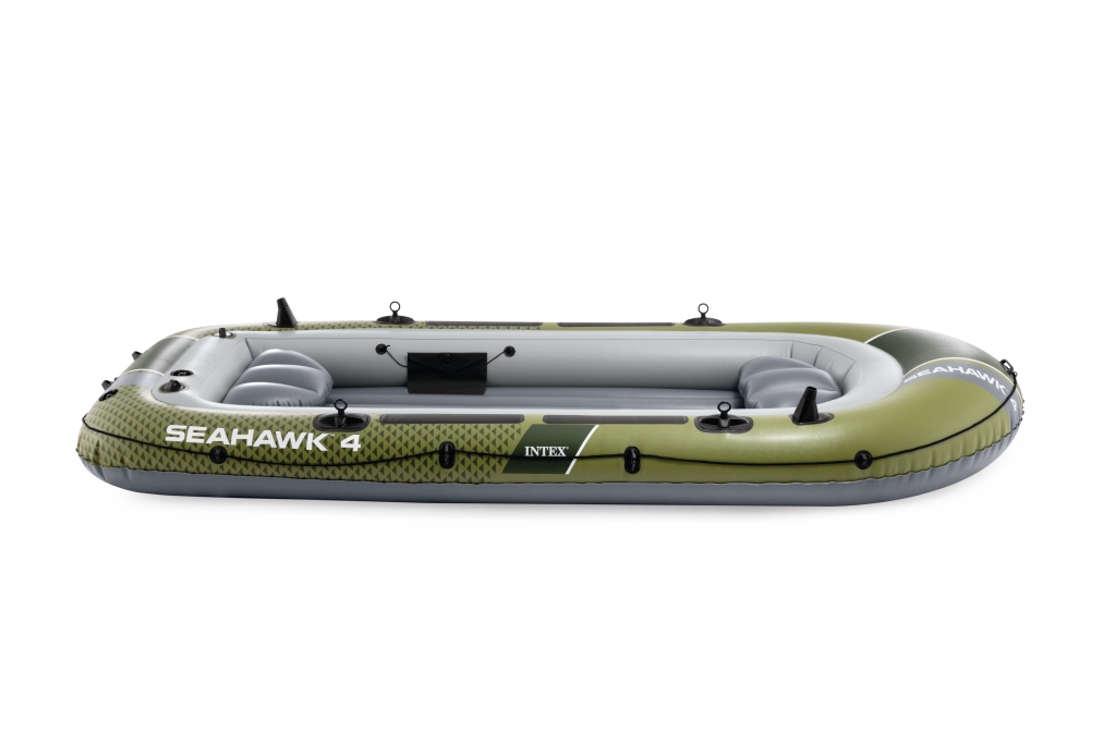 INTEX Seahawk 4 je všestranný nafukovací člun pro volný čas, rodinné výlety i rekreační rybaření. Odolný materiál PVC odolá oděru a nárazům, zatímco tři samostatné vzduchové komory (včetně pomocné vnitřní) zvyšují bezpečnost na vodě. Ergonomická I-nosníková podlaha a nafukovací sedáky přinášejí pohodlí i při delších plavbách.