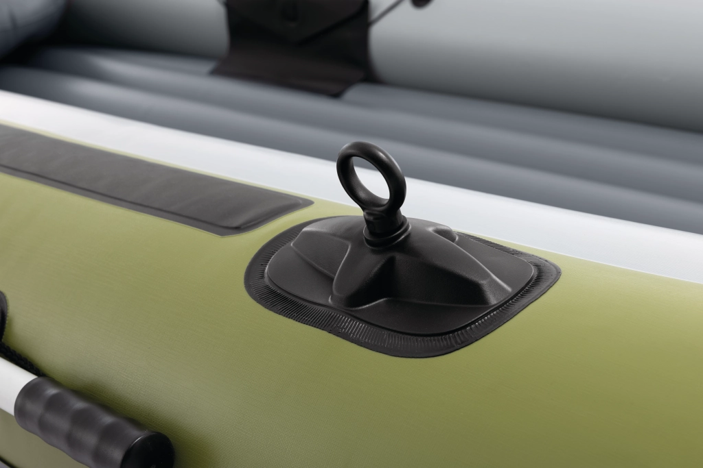 Člun se snadno připraví k použití díky dvěma bostonským ventilům pro rychlé nafouknutí a vyfouknutí. Integrované prvky jako rotační zámky a držáky vesel, obvodové úchytné lano a svařované madlo na přídi usnadňují manipulaci. Pro rybáře jsou k dispozici 2 držáky prutů a praktické pouzdro na drobnosti. Na zádi najdete přípojky pro montáž motoru, které rozšiřují možnosti využití.