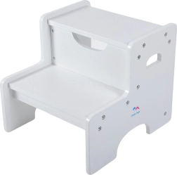 Dvoustupňová stolička 2Kids Toys je skvělým pomocníkem pro malé objevitele. Umožňuje dětem bezpečně dosáhnout k umyvadlu, pracovní desce nebo poličce a vede je k větší samostatnosti. Stabilní dřevěná konstrukce s nosností až 70 kg zajistí bezpečné používání každý den, zatímco praktické madlo usnadňuje přenášení. Jednoduchý bílý design zapadne do každého interiéru.