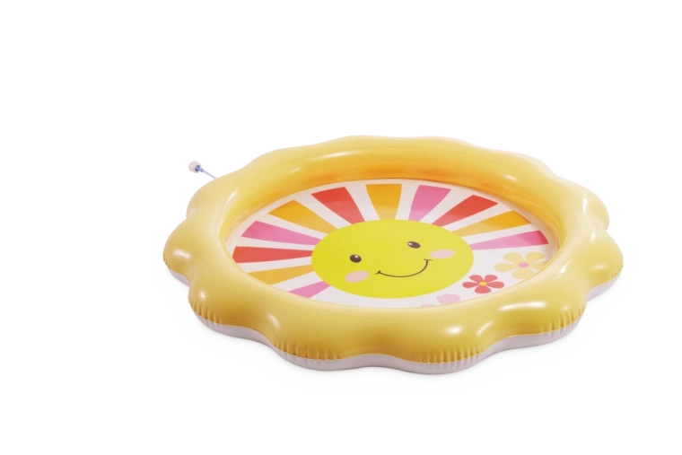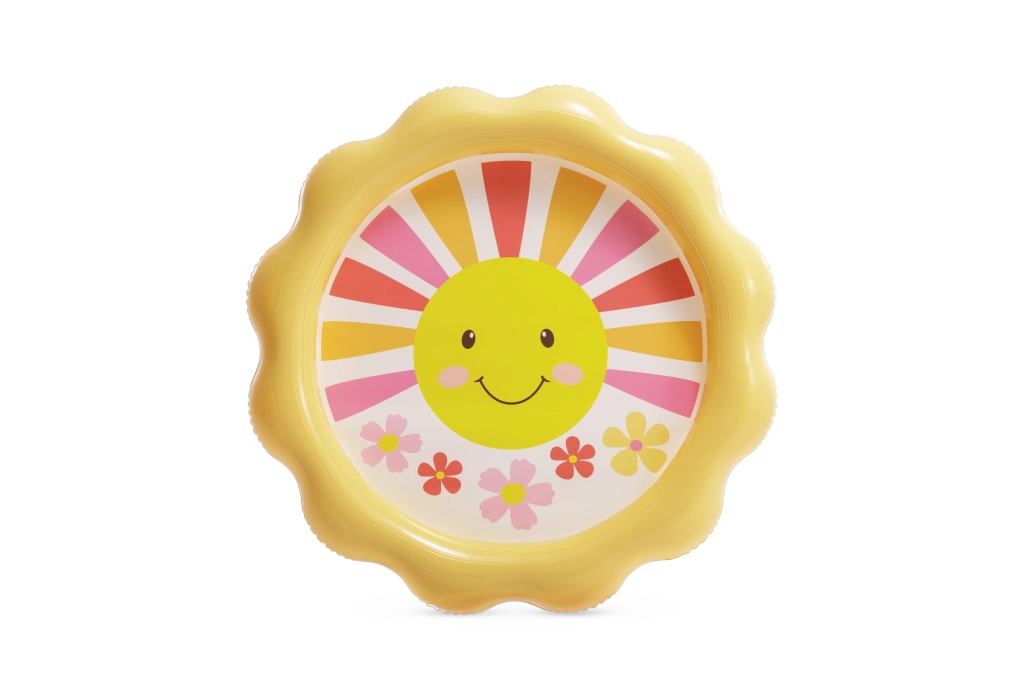 Nafukovací dětský bazének Sluneční paprsky je navržen pro hravé vodní radovánky dětí přibližně od 2 let. Vlnitý žlutý okraj připomínající sluneční paprsky a veselý potisk se sluníčkem a květinami vytváří přátelské a lákavé prostředí pro bezpečné cákání. Integrovaná fontánka po obvodu se aktivuje jednoduchým připojením zahradní hadice, takže se z bazénku stane osvěžující sprchové hřiště.