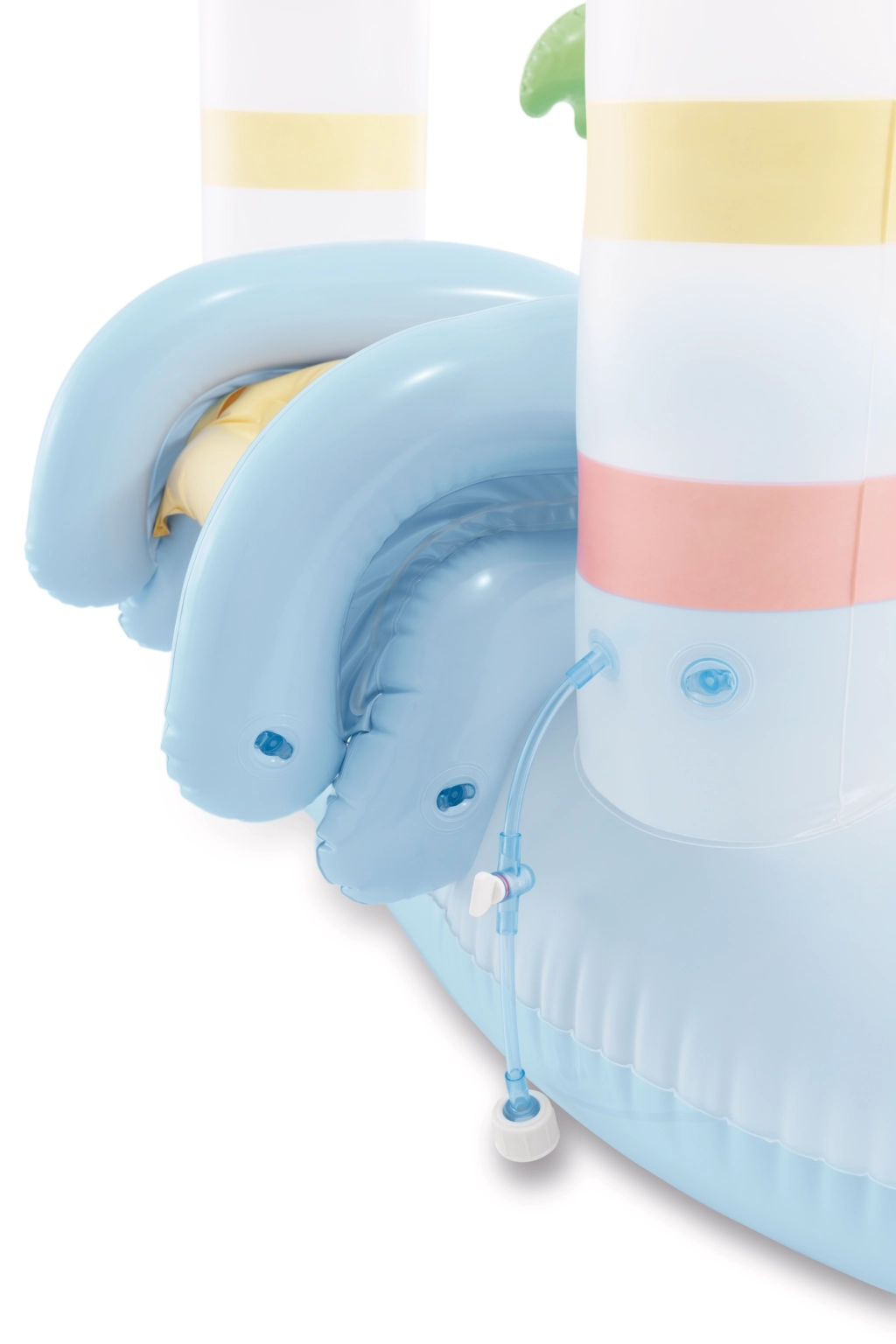 Hrací centrum Jednorožčí hrad přináší dětem osvěžení i spoustu herních možností v jednom. Pastelové barvy, motiv kouzelného hradu a roztomilé ilustrace vytvářejí příjemnou atmosféru pro letní zábavu. Mezi dvěma věžemi se nachází oblouk se sprškou – stačí připojit zahradní hadici a vznikne jemné ochlazení během hraní.