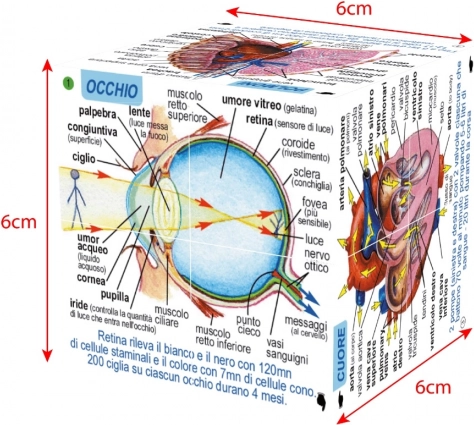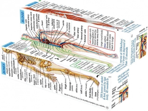 Kostka se skládá ve všech směrech a nabízí mnoho kombinací, v nichž se zobrazují orgány a tělesné soustavy s přehlednými popisky v angličtině. Je vyrobena z odolného PVC, splňuje aktuální evropské bezpečnostní normy a je vhodná pro děti od 7 let.