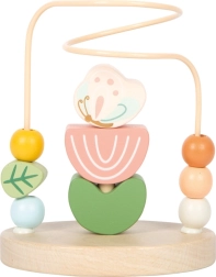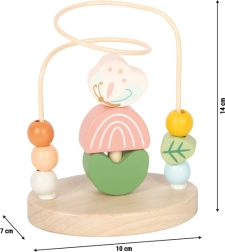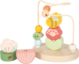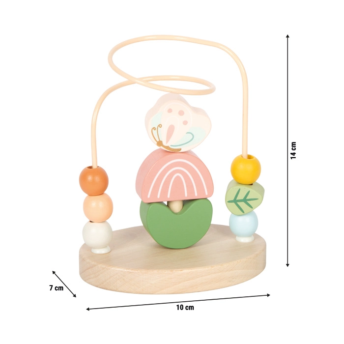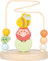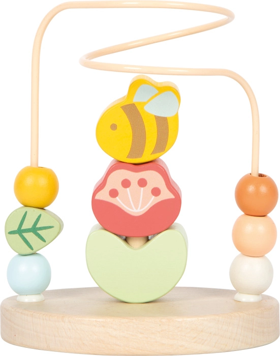 Motorický labyrint Louka small foot přináší dětem radost z objevování a učení. Pevná kovová smyčka s barevnými dřevěnými korálky umožňuje plynulé posouvání, které přirozeně podporuje rozvoj jemné motoriky a přesného úchopu. Uprostřed je skládací minihra s šesti dřevěnými dílky (včelka, motýlek, 2 okvětní lístky, 2 listy), jež podporuje soustředění a logické myšlení.