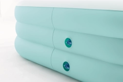 Velkou předností jsou zabudovaná nafukovací sedadla na obou kratších stranách, která oddělují relaxační zónu od prostoru pro koupání. Plochá vnitřní podlaha zajišťuje bezpečné a příjemné stání i sezení ve vodě. Praktický vypouštěcí ventil umožňuje rychlé vypuštění a jednoduchou údržbu vody.