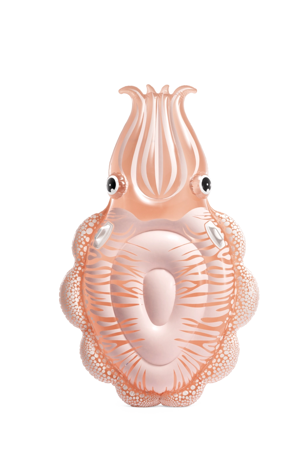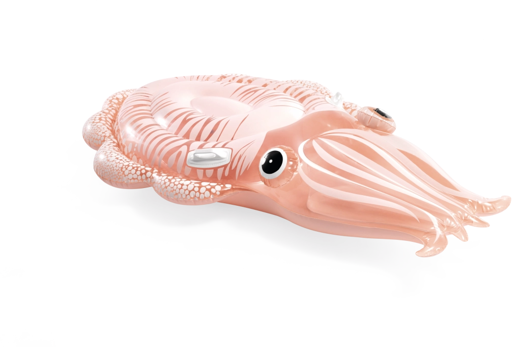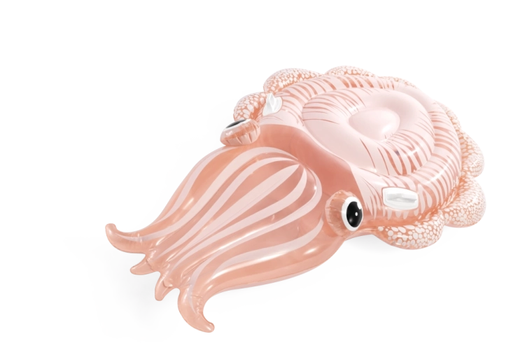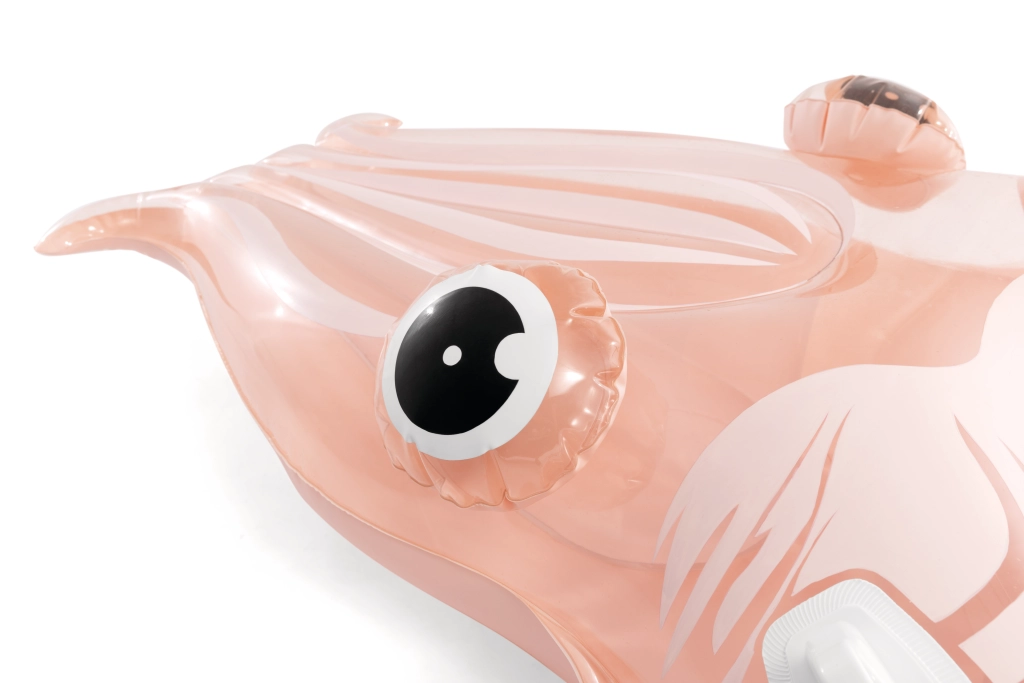 Nafukovací lehátko ve tvaru sépie spojuje originální vzhled s praktickými funkcemi pro bezpečnou vodní zábavu. Díky průhlednému PVC s růžovo‑oranžovým nádechem a výraznými detaily těla sépie působí velmi atraktivně a skvěle zapadne do letní atmosféry u bazénu i na přírodních vodních plochách.