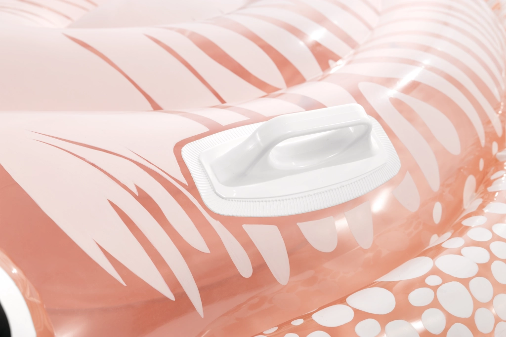 Lehátko je navrženo pro děti od 6 let a klade důraz na bezpečnost: dvě pevná plastová madla zlepšují stabilitu při nasedání i plavání a dvě samostatné vzduchové komory se bezpečnostními ventily usnadňují nafukování i vyfukování a snižují riziko úniku vzduchu. Velikost a ergonomický tvar poskytují dostatek prostoru pro pohodlné ležení a bezstarostné lenošení na vodě.