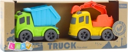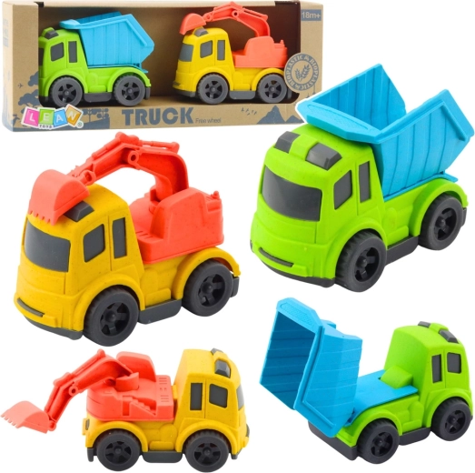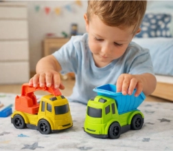 Sklápěčka má zvedací a sklápěcí korbu pro snadné vykládání nákladu. Minibagr je vybaven pohyblivým a otočným ramenem s lžící, takže děti mohou nakládat, přesouvat a budovat podle vlastní fantazie. Manipulace s prvky podporuje koordinaci oko–ruka a logické myšlení.