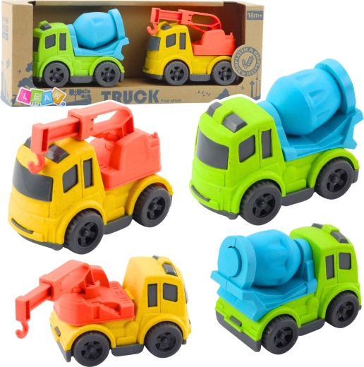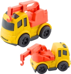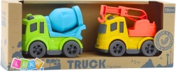 Ruchové prvky – otočný buben u míchačky a výsuvný, otočný hák u odtahovky – rozvíjejí koordinaci oko–ruka a podporují představivost. Autíčka jsou lehká, dobře se drží a skvěle je využijete jak v pokojíčku, tak na zahradě či v parku.