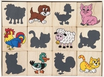 Pexeso ze dřevěných kartiček s potiskem zvířátek a jejich stínů. Pomáhá zábavným způsobem rozvíjet představivost a paměť vašich dětí.